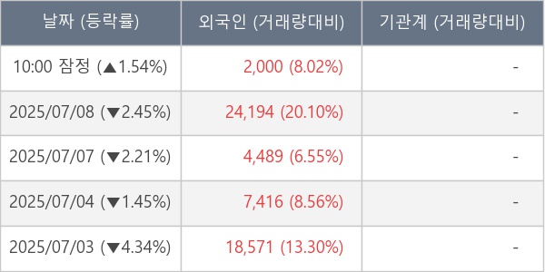 [표] 외국인ㆍ기관 순매매량 (단위 주)