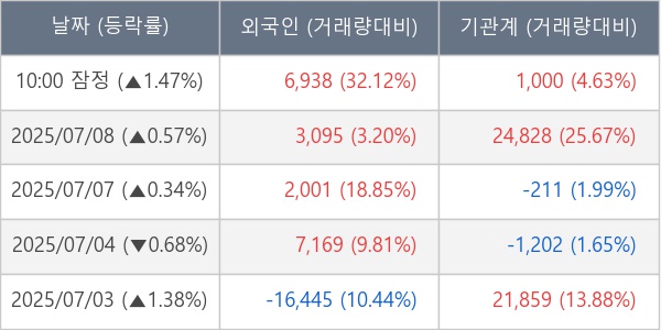 ※ 사모펀드 등 일부 기관의 순매매량은 표시되지 않음