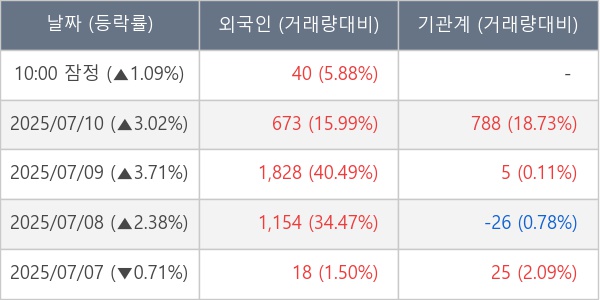 [표] 외국인ㆍ기관 순매매량 (단위 주)