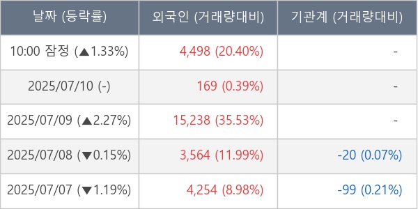 [표] 외국인ㆍ기관 순매매량 (단위 주)
