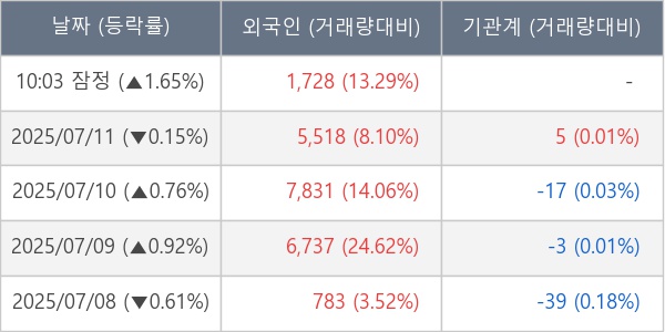 [표] 외국인ㆍ기관 순매매량 (단위 주)
