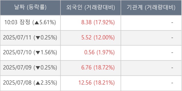 [표] 외국인ㆍ기관 순매매량 (단위 만주)