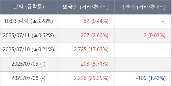 [표] 외국인ㆍ기관 순매매량 (단위 주)