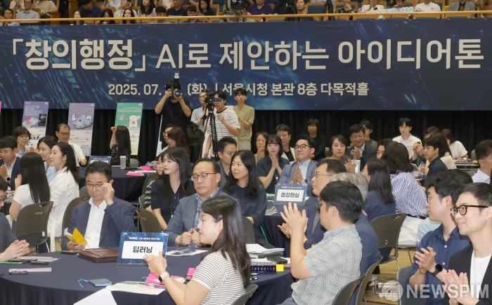 [서울=뉴스핌] 양윤모 기자 = 22일 오전 시청 8층 다목적홀에서 오세훈 서울시장이 참석한 가운데 '창의행정 AI로 제안하는 아이디어톤' 행사가 개최 되었다. 2025.07.22 yym58@newspim.com