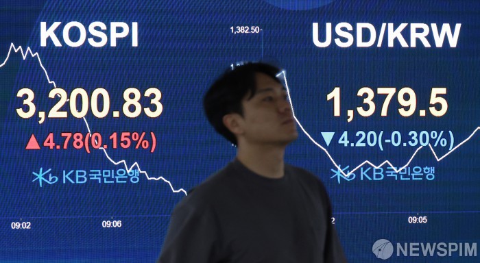[서울=뉴스핌] 김학선 기자 = 28일 코스피 지수는 전 거래일보다 32.56p(1.02%) 오른 3228.61로 개장했다. 달러/원 환율은 3.1원 오른 1381원으로, 코스닥은 4.31p(0.53%) 오른 811.26으로 거래를 시작했다. 이날 오전 서울 여의도 KB국민은행 딜링룸에서 딜러들이 업무를 보고 있다. 2025.07.28 yooksa@newspim.com