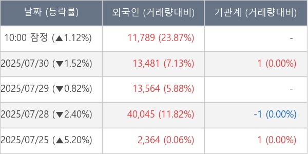 [표] 외국인ㆍ기관 순매매량 (단위 주)