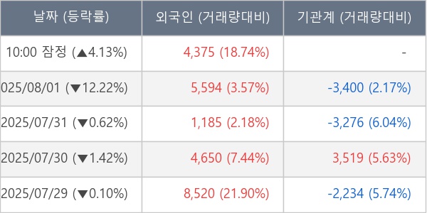 [표] 외국인ㆍ기관 순매매량 (단위 주)