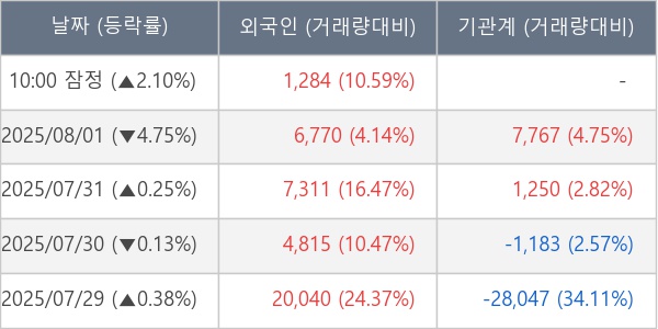 [표] 외국인ㆍ기관 순매매량 (단위 주)