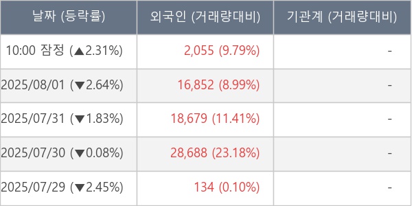 [표] 외국인ㆍ기관 순매매량 (단위 주)