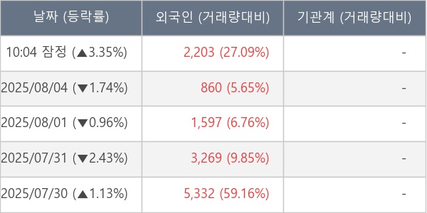 [표] 외국인ㆍ기관 순매매량 (단위 주)