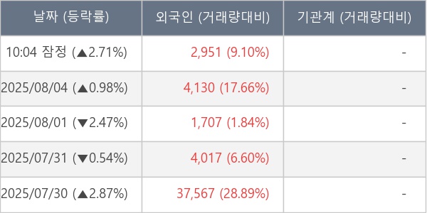 [표] 외국인ㆍ기관 순매매량 (단위 주)