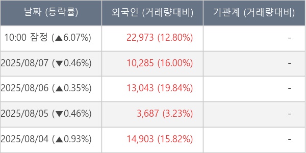 [표] 외국인ㆍ기관 순매매량 (단위 주)