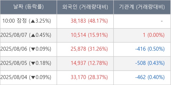 [표] 외국인ㆍ기관 순매매량 (단위 주)