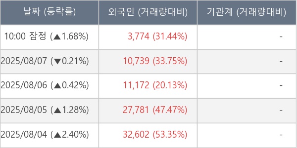 [서울=뉴스핌] 로보뉴스 = 08일 10시 15분 현재 라이콤(388790)은 전일 대비 1.68% (현재가 2,425원) 상승했고, 외국인이 최근 5일 연속 순매수(누적 86,068주, 잠정) 행진을 하고 있다.