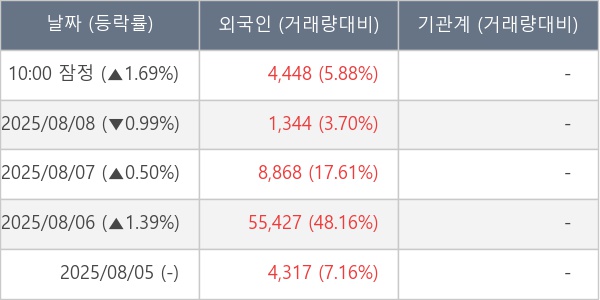 [표] 외국인ㆍ기관 순매매량 (단위 주)