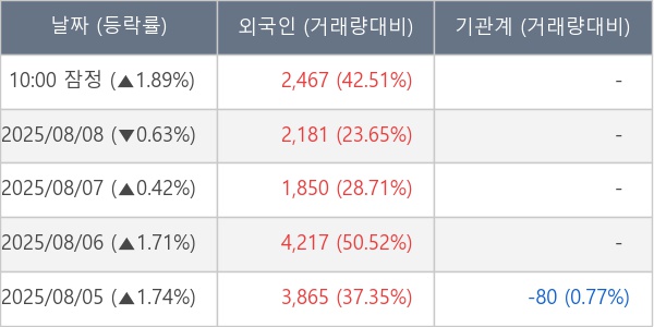 [표] 외국인ㆍ기관 순매매량 (단위 주)