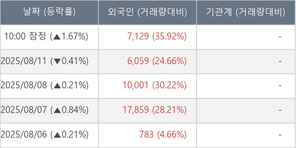 [서울=뉴스핌] 로보뉴스 = 12일 10시 15분 현재 센코(347000)는 전일 대비 1.67% (현재가 2,440원) 상승했고, 외국인이 최근 5일 연속 순매수(누적 41,831주, 잠정) 행진을 하고 있다.