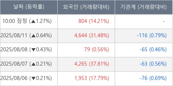 [표] 외국인ㆍ기관 순매매량 (단위 주)