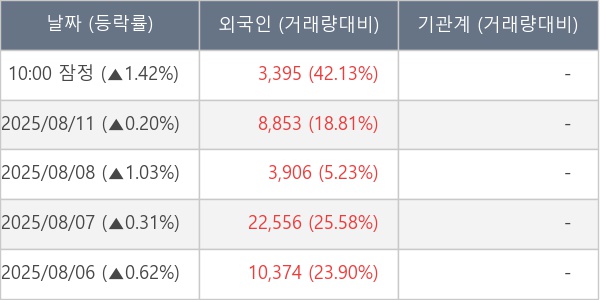 [표] 외국인ㆍ기관 순매매량 (단위 주)