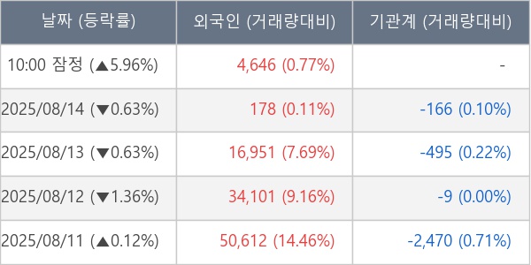 [표] 외국인ㆍ기관 순매매량 (단위 주)
