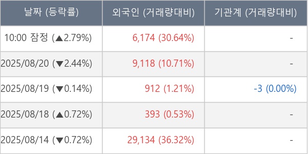 [표] 외국인ㆍ기관 순매매량 (단위 주)