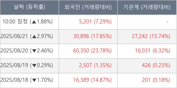 [표] 외국인ㆍ기관 순매매량 (단위 주)