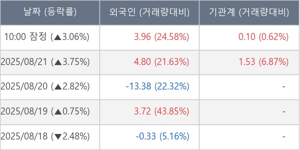 [표] 주요 기관별 순매매량 (단위 만주)