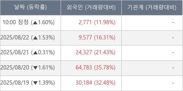 [표] 외국인ㆍ기관 순매매량 (단위 주)