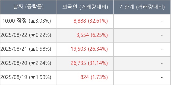 [표] 외국인ㆍ기관 순매매량 (단위 주)