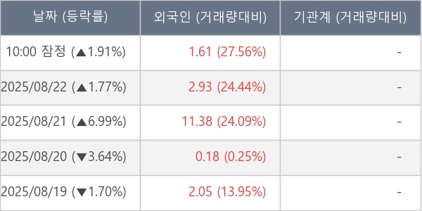 [표] 외국인ㆍ기관 순매매량 (단위 만주)