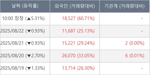[표] 외국인ㆍ기관 순매매량 (단위 주)