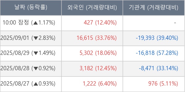 [표] 외국인ㆍ기관 순매매량 (단위 주)