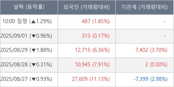 [표] 외국인ㆍ기관 순매매량 (단위 주)