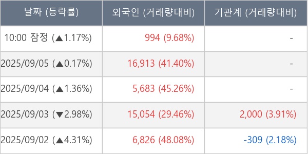 [표] 외국인ㆍ기관 순매매량 (단위 주)