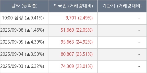 [표] 외국인ㆍ기관 순매매량 (단위 주)