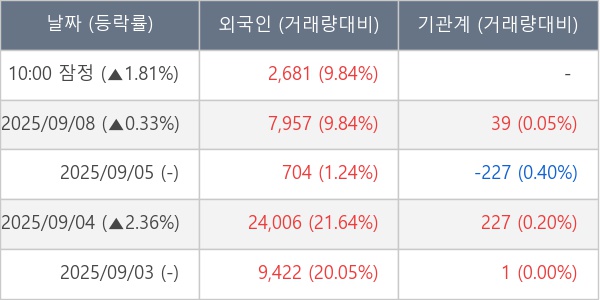 [표] 외국인ㆍ기관 순매매량 (단위 주)