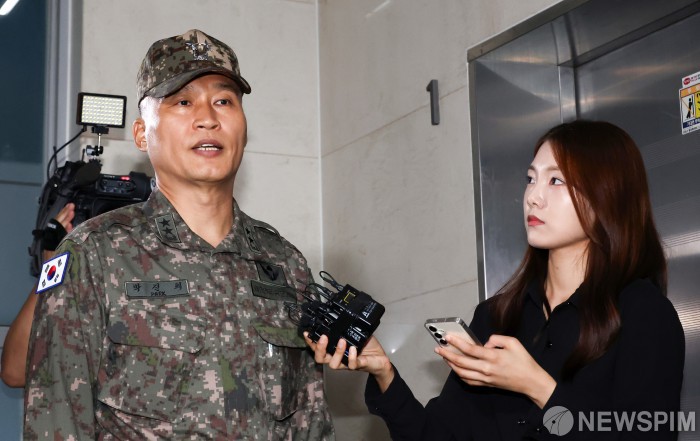 [서울=뉴스핌] 최지환 기자 = 이종섭 전 국방부 장관 참모진이었던 박진희 전 군사보좌관이 11일 오전 서울 서초구 순직해병 특별검사팀 사무실에 피의자 조사를 위해 출석하며 심경을 밝히고 있다. 2025.09.11 choipix16@newspim.com
