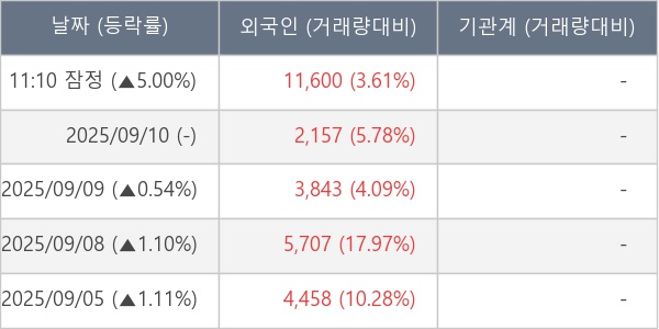 [표] 외국인ㆍ기관 순매매량 (단위 주)