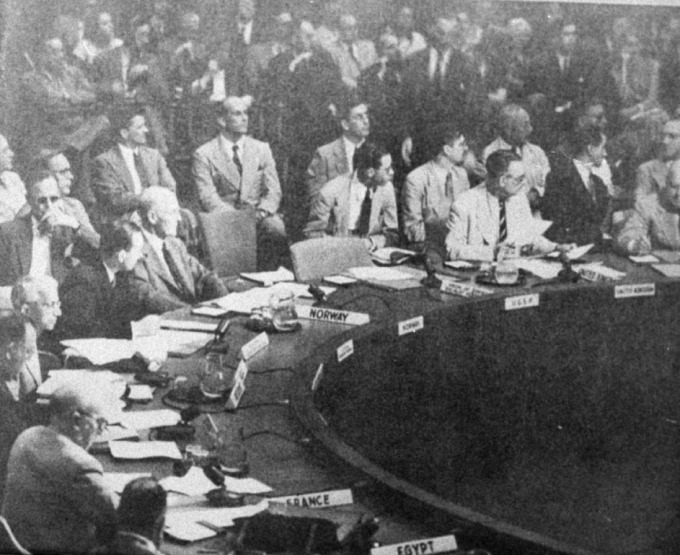 1950년 UN 긴급 안전 보장 회의에서 북한의 38선 이북으로의 철수를 결의하는 모습. [사진= 국가기록원]