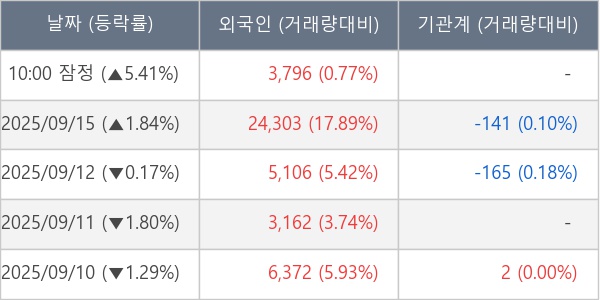 [표] 외국인ㆍ기관 순매매량 (단위 주)
