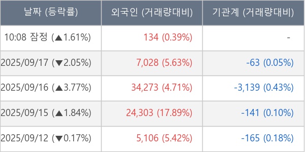 [표] 외국인ㆍ기관 순매매량 (단위 주)