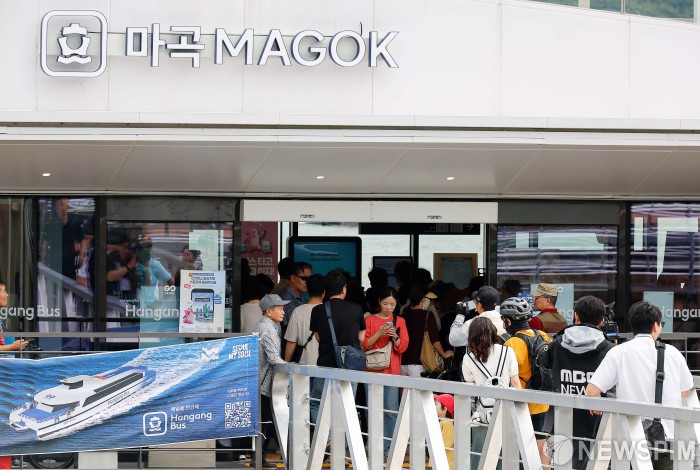 [서울=뉴스핌] 류기찬 기자 = 한강버스 정식 운항 첫날인 18일 오전 서울 강서구 한강버스 마곡선착장에서 시민들이 한강버스를 타기 위해 대기하고 있다. 2025.09.18 ryuchan0925@newspim.com