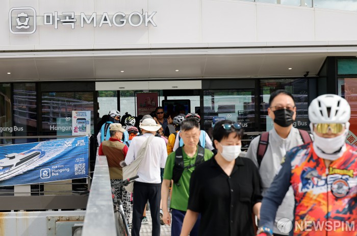 [서울=뉴스핌] 류기찬 기자 = 한강버스 정식 운항 첫날인 18일 오전 서울 강서구 한강버스 마곡선착장에서 시민들이 한강버스를 타기 위해 대기하고 있다. 2025.09.18 ryuchan0925@newspim.com