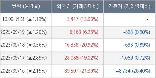 [표] 외국인ㆍ기관 순매매량 (단위 주)