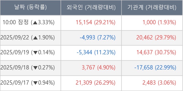 [장중수급포착] 다우기술, 외국인/기관 동시 순매수… 주가 +3.33%