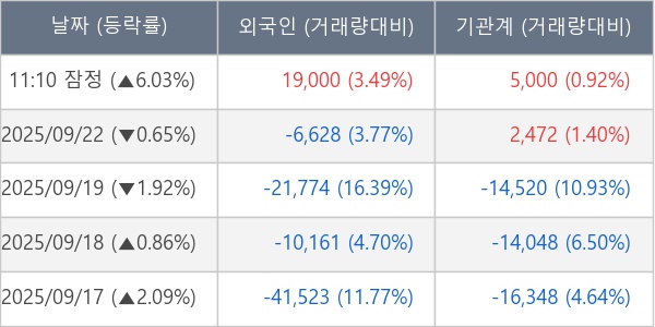 [표] 외국인ㆍ기관 순매매량 (단위 주)