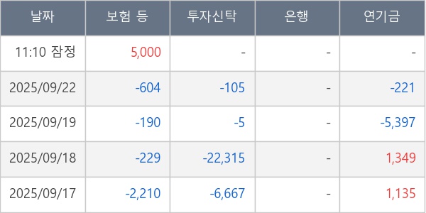 [표] 주요 기관별 순매매량 (단위 주)