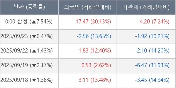 [장중수급포착] 성광벤드, 외국인/기관 동시 순매수… 주가 +7.54%