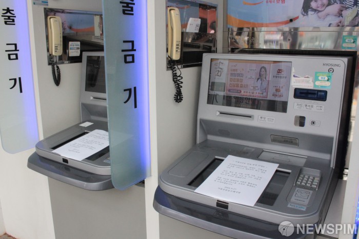 [서울=뉴스핌] 이형석 기자 = 27일 오후 국가정보자원관리원 화재로 정부 전산망이 멈추며 주요 공공서비스가 중단되고 있다. 이날 우체국 예금·보험 등 주요 서비스가 전면 중단 됐다. 우체국 ATM 기기에 사용불가 안내문이 붙어 있다. 2025.09.27 leehs@newspim.com