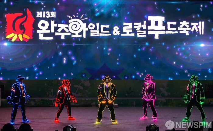 [서울=뉴스핌] 양윤모 기자 = 27일 오후 전라북도 완주군 고산면 고산자연휴양림 일원에서 열린 '2025 완주 와일드앤(&)로컬푸드축제' 특별무대에서 열린 개막식에서 축하공연이 펼쳐지고 있다. 13회를 맞는 이번 축제는 '와일드한 액션, 거침없는 미식여행!'을 주제로 다양한 체험 프로그램과 자연의 맛이 담긴 로컬밥상,신선한 완주 농특산물을 판매하는 로컬 장터 등으로 방문객을 맞는다. [사진=완주군청] 2025.09.28 yym58@newspim.com